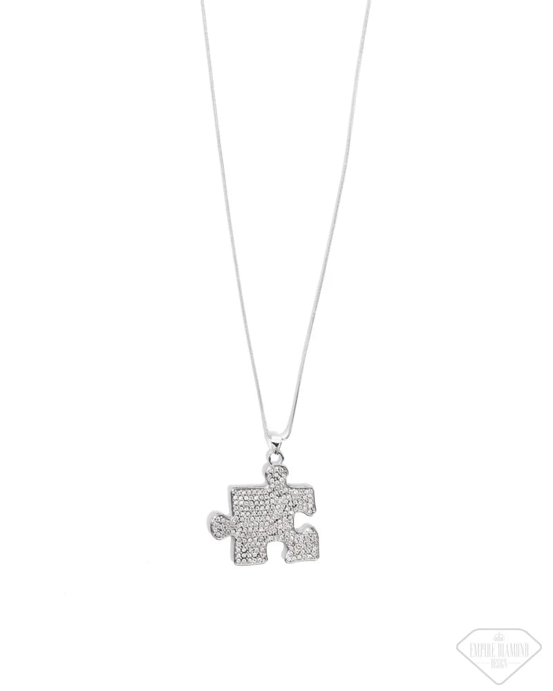 A PIECE OF THE PUZZLE - WHITE RHINESTONE "I AM…" SILVER SHORT NECKLACE - EMPIRE DIAMOND EXCLUSIVE - PAPARAZZI