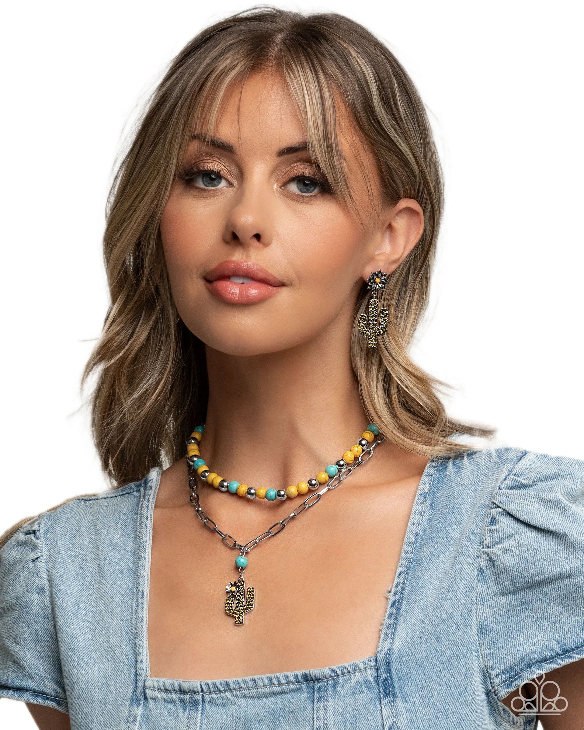Necklace: "Cactus Cascade - Yellow" Post Earring: "Cactus Cause - Yellow”
