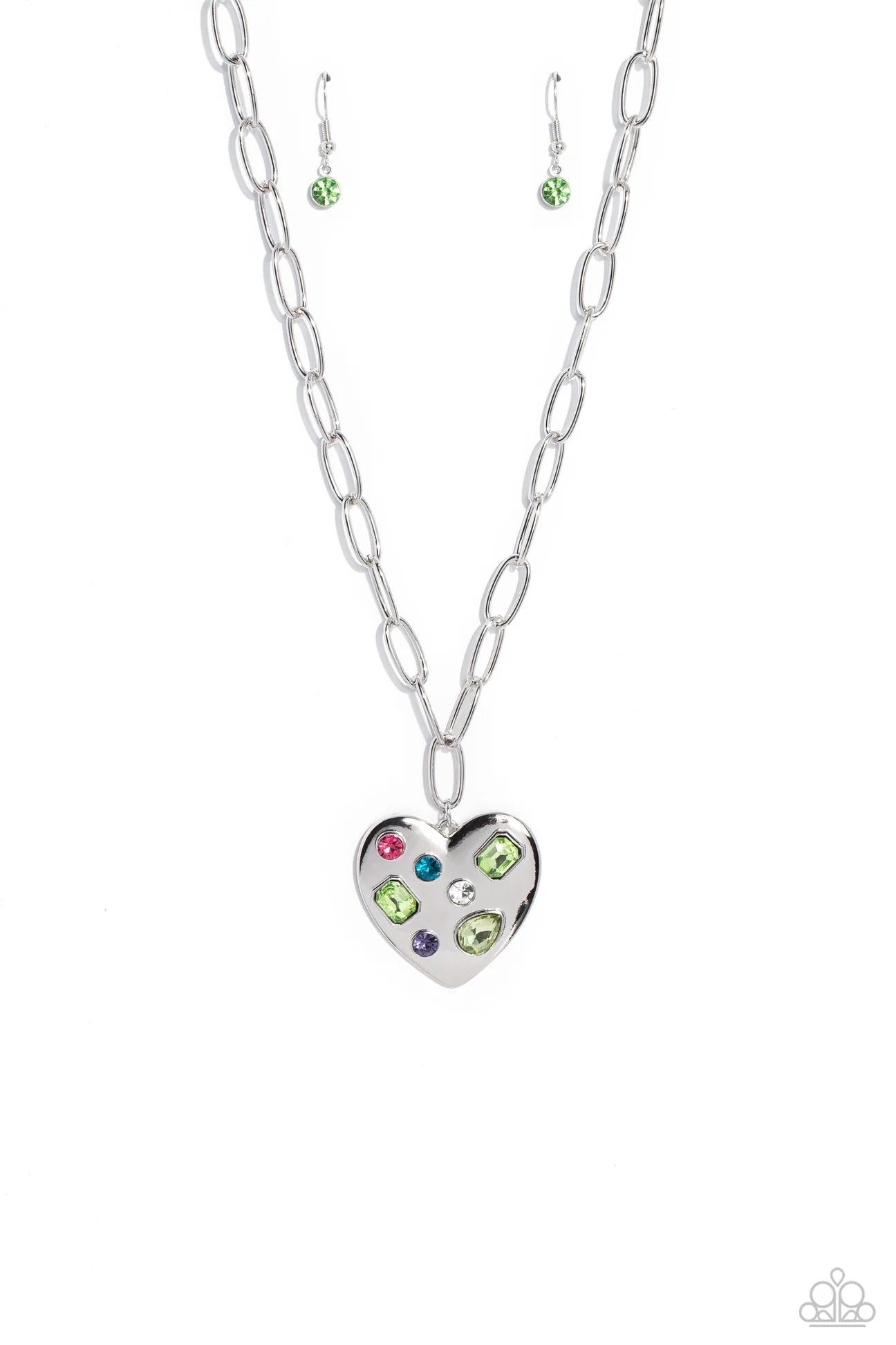 Online Dating - Green Necklace - Paparazzi Accessories/Paparazzi Relationship Ready - Green Post Earrings