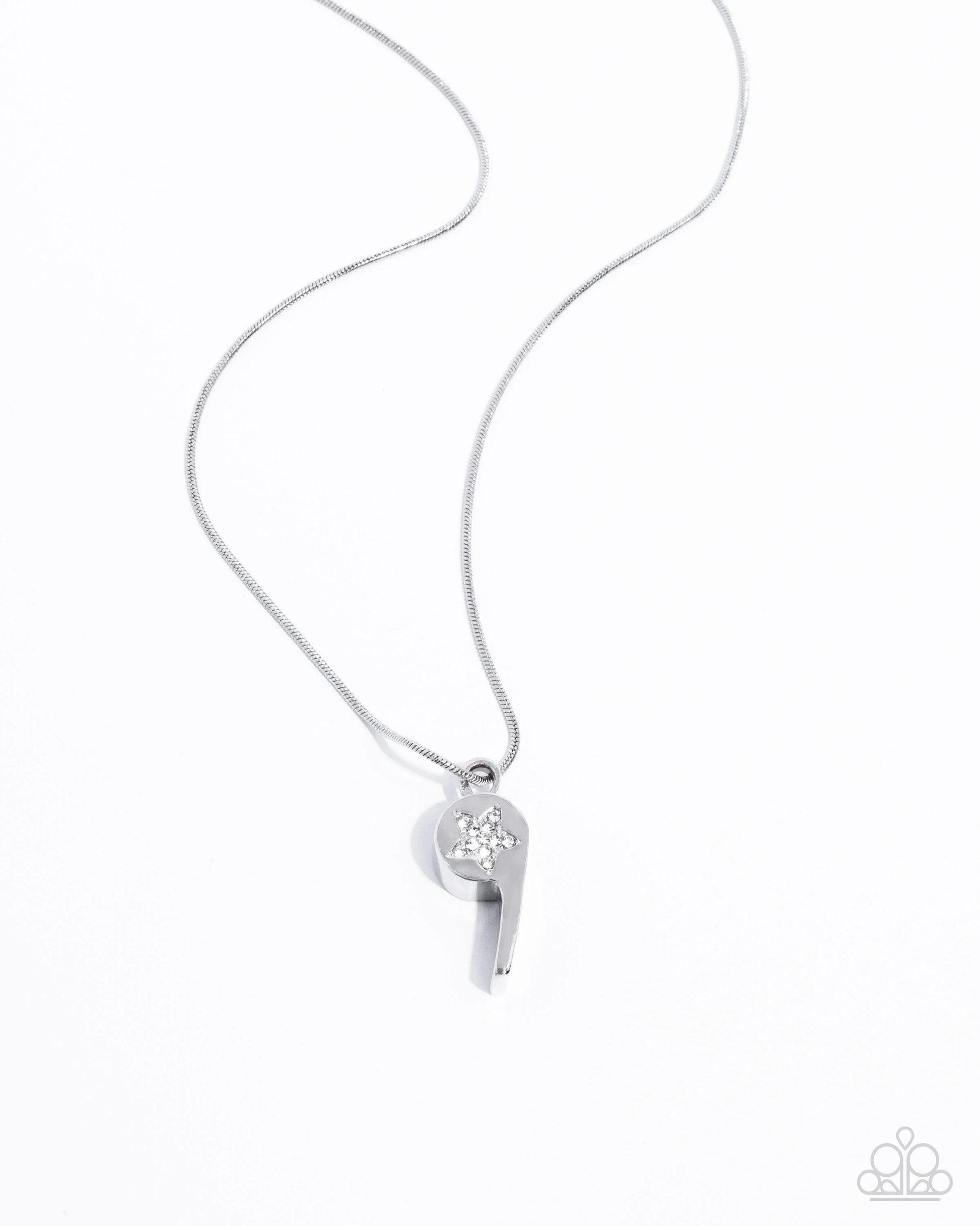 Featuring white rhinestones, a silver whistle-like charm is embellished with a shimmery star on its side, gliding along a silver snake chain for a charismatic, coach-inspired chic look. Features an adjustable clasp closure