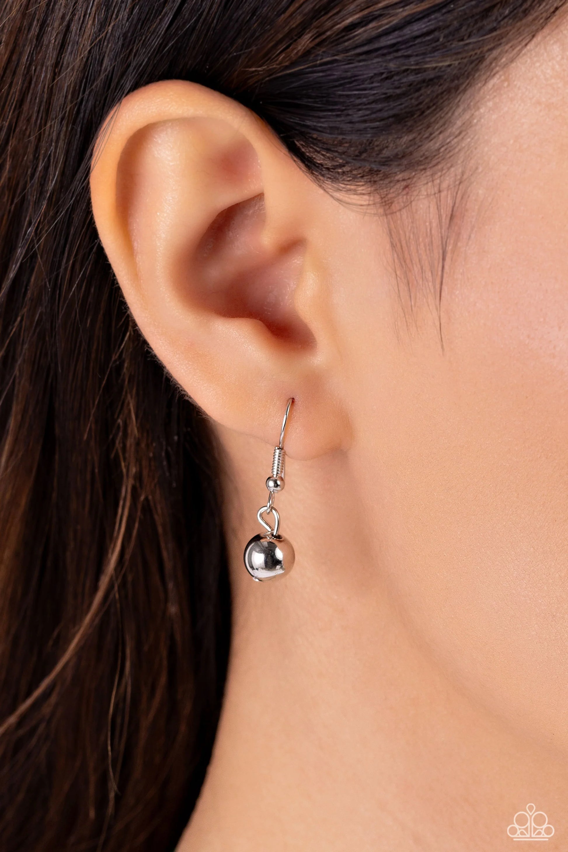An oversized, sleek silver heart glides along a vibrant green cord, creating a flirtatious pendant below the collar. Features an adjustable clasp closure