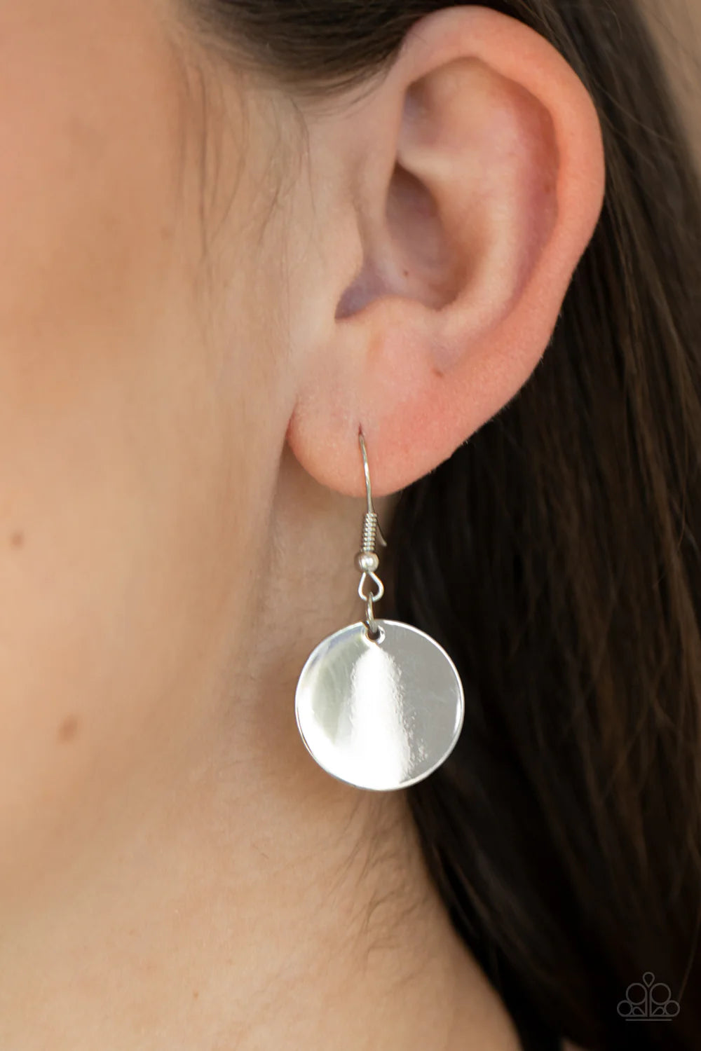 A trio of silver, black, and fuzzy cheetah print discs overlap into an adjustable pendant along rows of shiny black cording for a wildly retro look