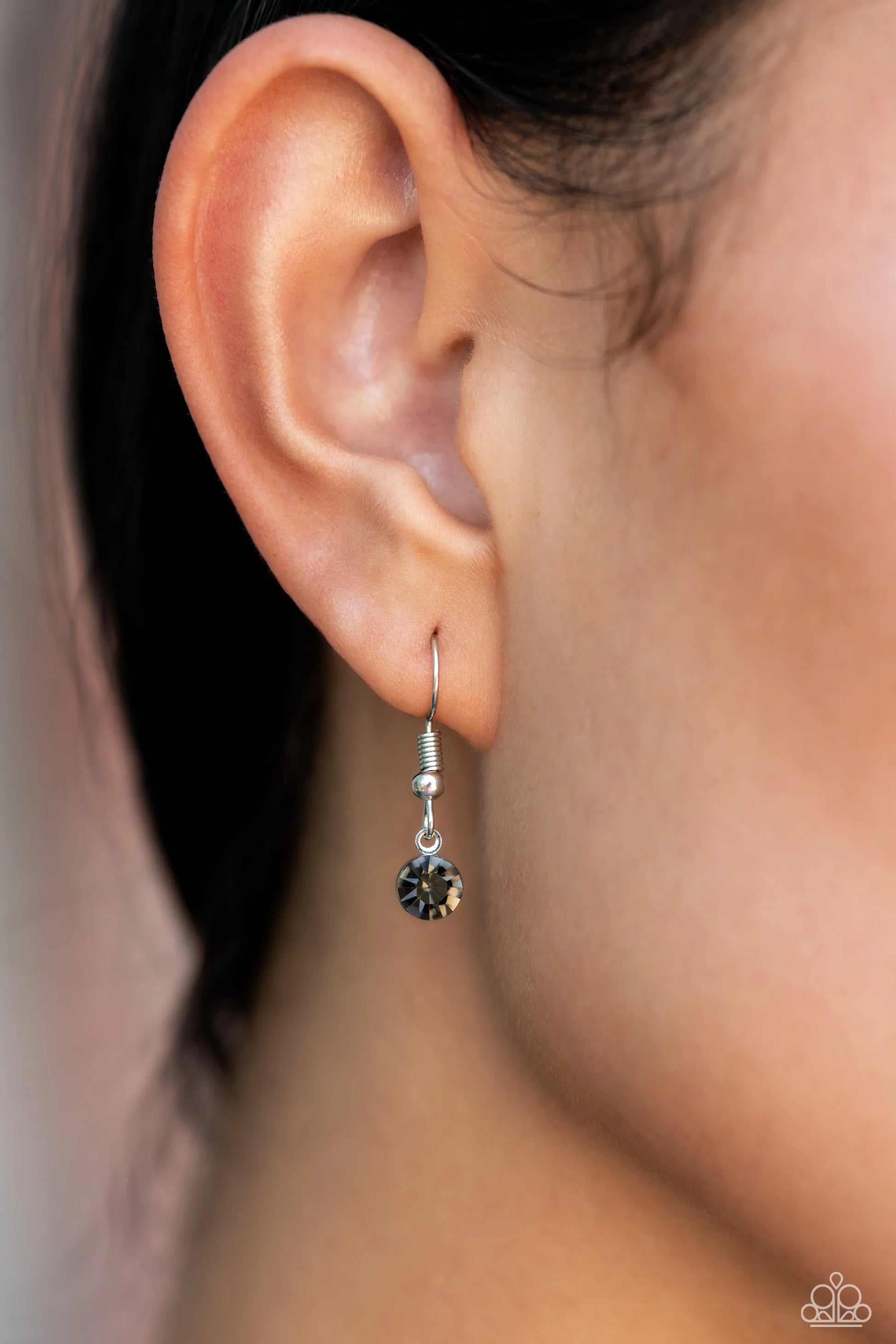 Infused on a classic silver chain, a strand of thick silver curb chain, and a collection of exaggerated, smoky radiant-cut gems in silver pronged fittings combine to create a collision of industrial color around the neckline. An oversized silver lock charm, embossed in white rhinestones, dangles from the gritty display for a touch of soft glitz to the design. Features an adjustable clasp closure