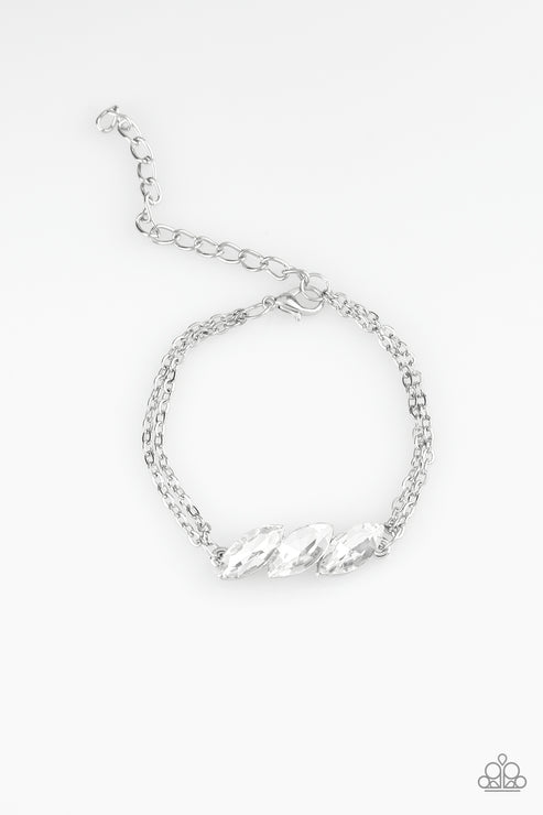 Featuring regal marquise-cuts, a trio of glittery white rhinestones join across the center of the wrist for a timeless look. Features an adjustable clasp closure