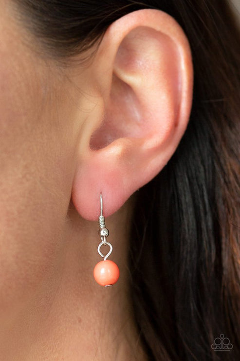 A collection of shiny silver, refreshing Living Coral, and zesty Pepper Stem beads are threaded along an invisible wire below the collar. Hammered triangular frames swing from the bottom of the colorful compilation, creating an artistic fringe. Features an adjustable clasp closure. Sold as one individual necklace. Includes one pair of matching earrings