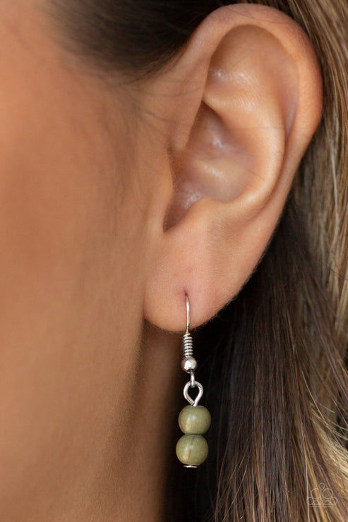 Infused with dainty green stone beads, hammered silver rectangular frames fan about below the collar for a bold seasonal look. Features an adjustable clasp closure